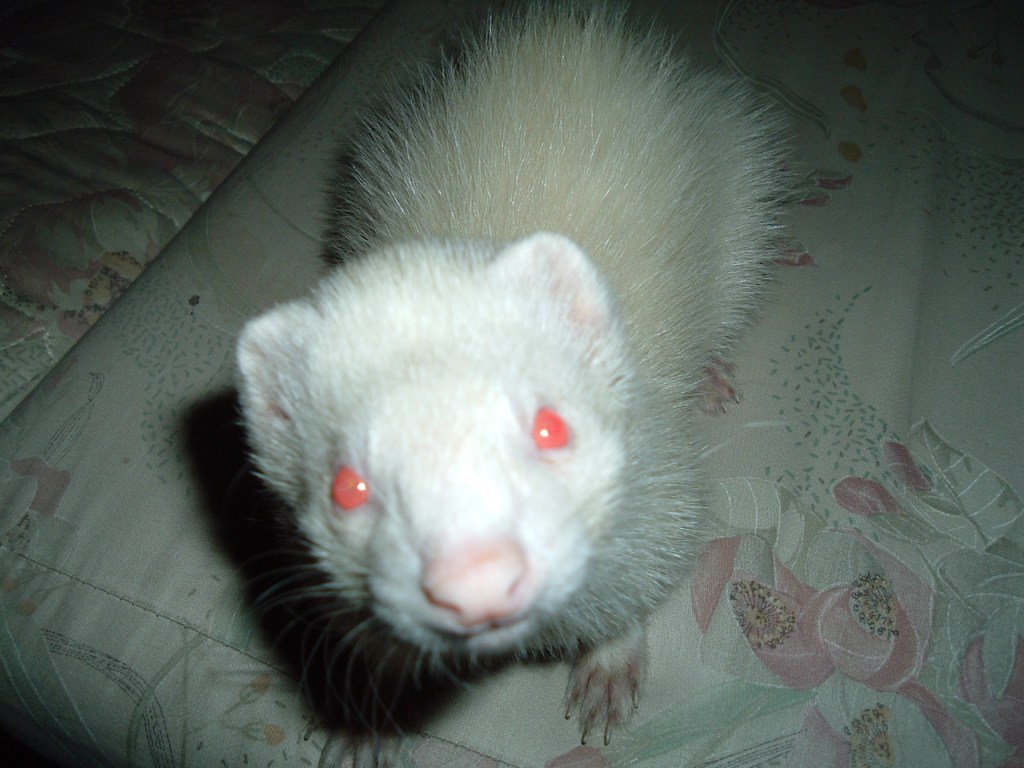 After Kaya had passed, Kim and I got two ferrets. The albino, Bozo, was the only other being I have personally known in this life with a spirit as gentle as Mom’s. When Mom came to visit and first met the ferrets, they were roaming free in the house and ran to the door to greet her. As was her way, she immediately greeted them with baby talk telling them hello. Bozo was awe struck. He seemed to be thinking: “Who is this angel?” For the remainder of her visit he followed her wherever she went, staring at her with that awe struck look, like a little lost puppy.