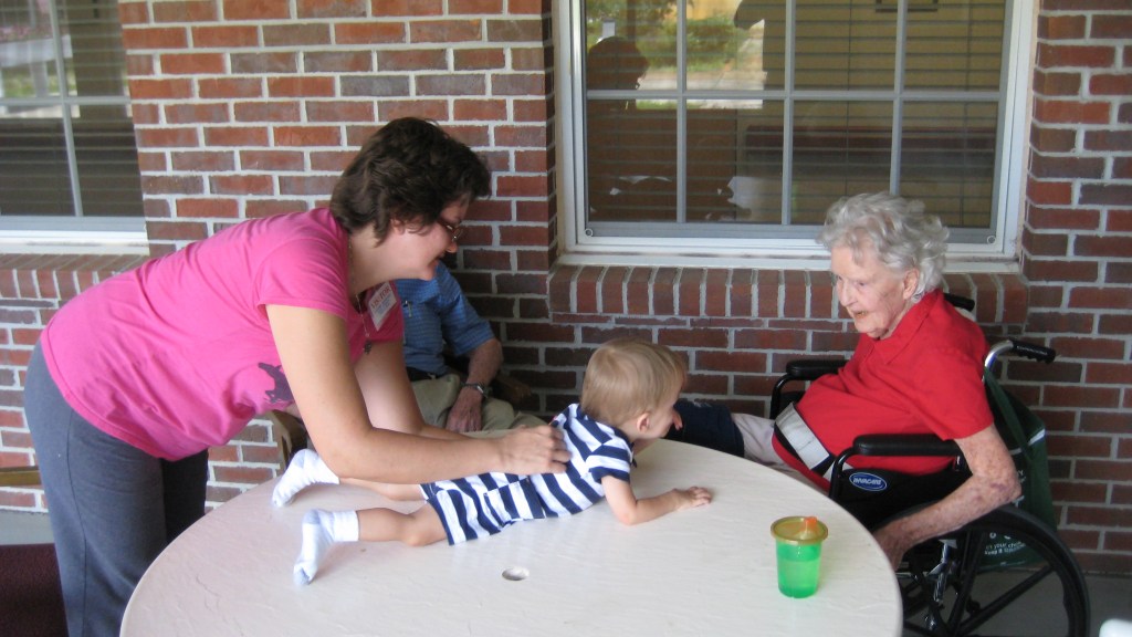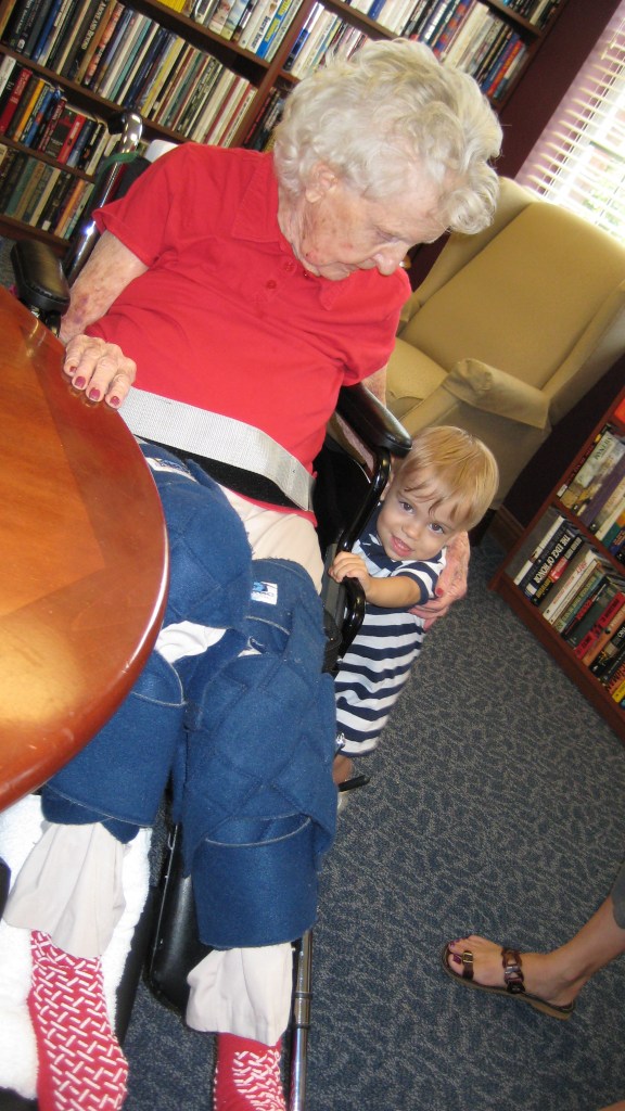 That connection remained, and it proved quite valuable to Mom once she was in the nursing home. Even when she was unresponsive to most, she would visibly brighten up when we brought Corbin to visit. Corbin, as well, was always clearly thrilled to see Grandma. His childish innocence saw completely past the wheelchair and deterioration; he only knew he was once again in the presence of his beloved Grandma O.